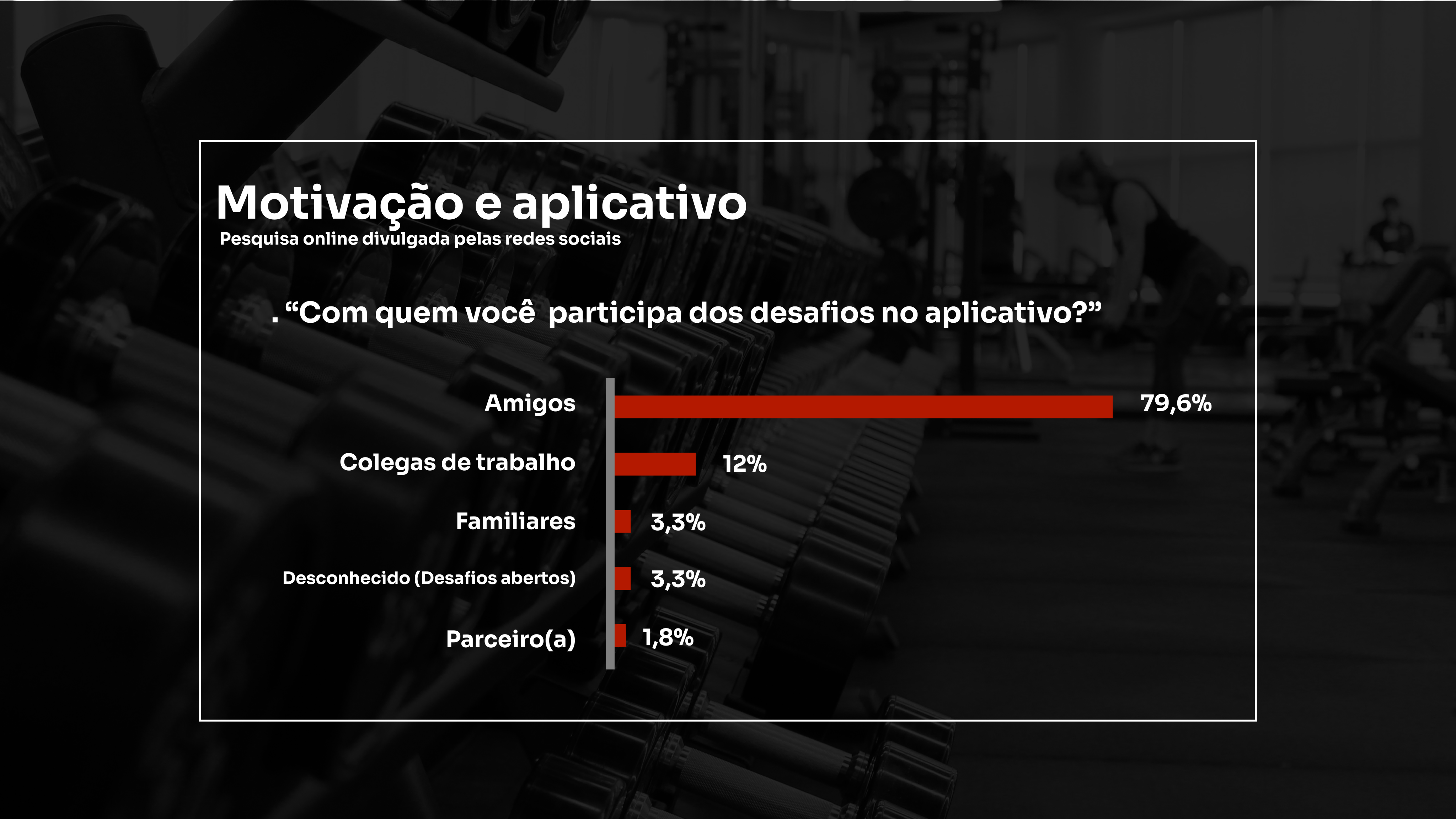 Para os entrevistados, 34,5% acreditam que participar desses desafios contribui bastante para manter uma rotina mais ativa, enquanto 19,5% acreditam que tende a ser positivo de certa forma. Juliana Castro, consultora em Comunicação, revela que o GymRats ressignificou sua relação com os exercícios físicos.